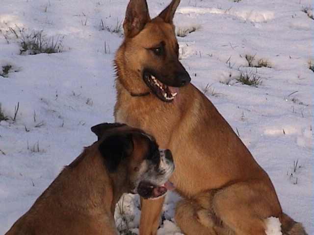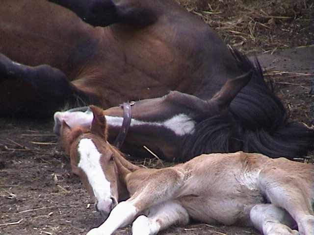 These are our animals. Carlton is a foal we breeded, here he's rolling around with his mom Chelsea. The dogs are Joris (Jan's dog) and Geena (mine), they just played in the snow.