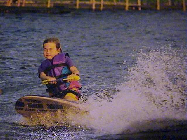 This my daughter Sara when she was 6 y/o. She started skiing on a kneeboard like a lot of kids do. Right now she's into horseriding and doesn't want to ski anymore.